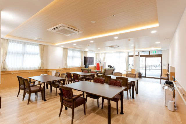 シンフォニア豊里では1階にデイサービスを併設しています(外部利用者と共用)。ぬくもりを感じる環境で,楽しく充実したひとときを過ごせるようなスペースにしました。